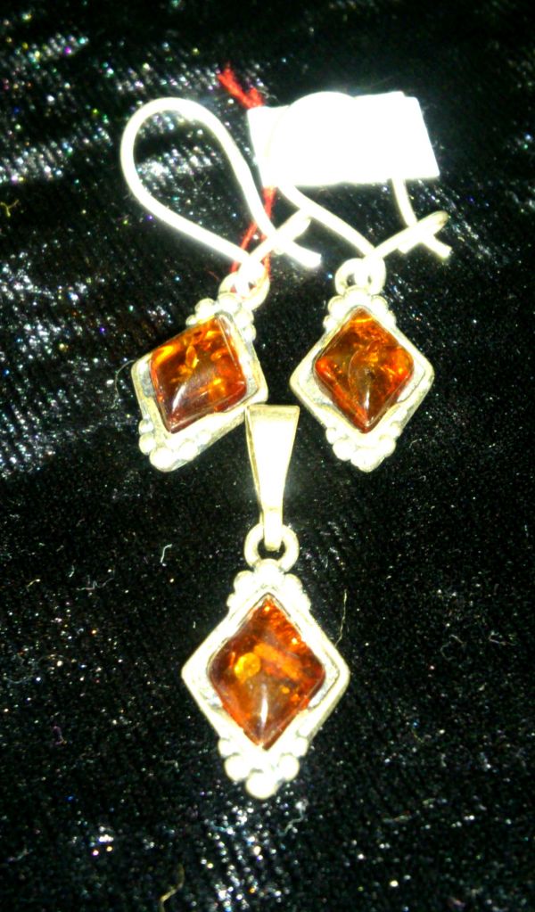 Komplekt. Yantar naturalnyy. Podveska i sergi.